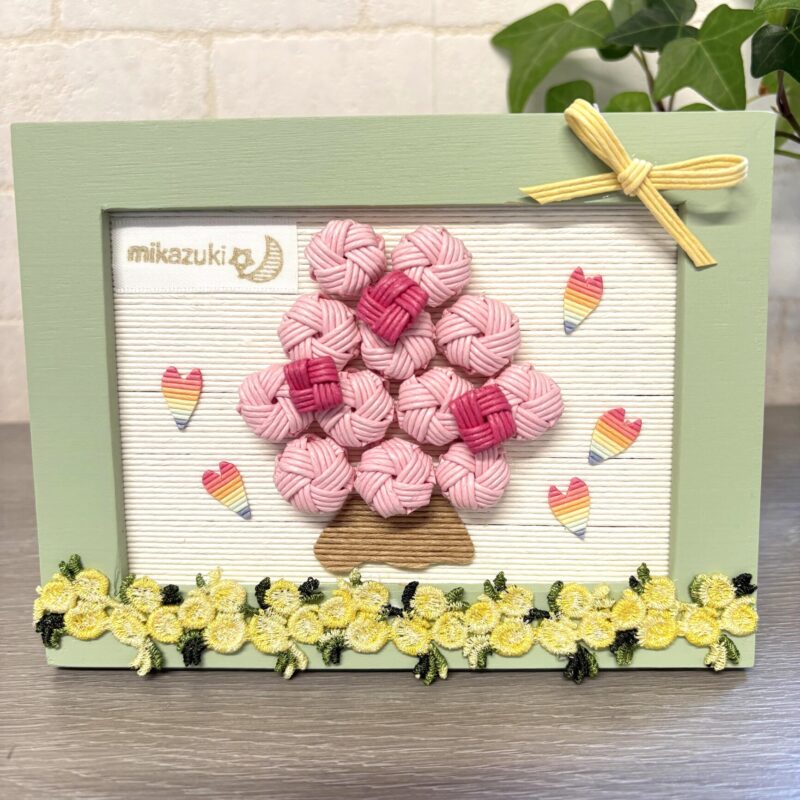 **花結び編みで作る「桜のフレーム飾り」**です。