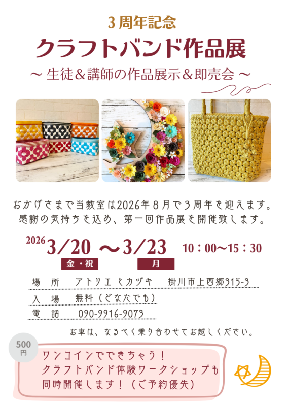 掛川市のクラフトバンド教室 アトリエミカヅキ です🌙