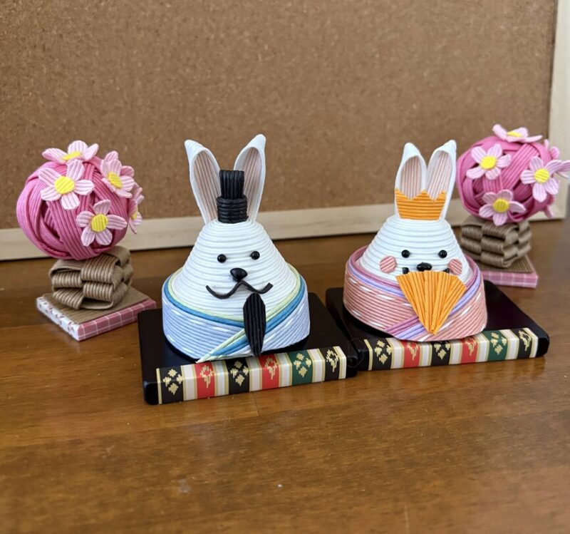 ふっくらしたフォルムが愛らしい、クラフトバンドの「うさぎのおひなさま」。